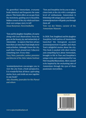 "Tom and his daughter Josephine (and, of course, Lou’s illustrations) turn my gaze toward the beauty, the joy, the melancholy of Amsterdam—to things that were always there, yet I had never noticed. I know the city, but now that I look up, I keep discovering something new." — Tracy Metz, journalist, author, presenter, and director of the John Adams Institute