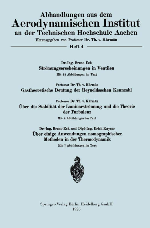 Strömungserscheinungen in Ventilen/Gastheoretische Deutung Der Reynoldsschen Kennzahl/Über Die Stabilität Der Laminarströmung Und Die Theorie Der Turbulenz/Über Einige Anwendungen Nomographischer Methoden in Der Thermodynamik