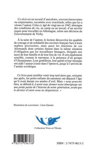 Cet ouvrage est un recueil d'anecdotes, toutes réelles et vécues par l'auteur. Agé de vingt ans en 1942, il témoigne des conditions de vie, au camp ou au travail, d'un ouvrier requis pour travailler en Allemagne. Ainsi le lecteur découvrira les qualités de courage et de solidarité des ouvriers au sein du camp, mais aussi les réactions des Allemands dont certains étaient dans la même situation d'obligation que les travailleurs étrangers.