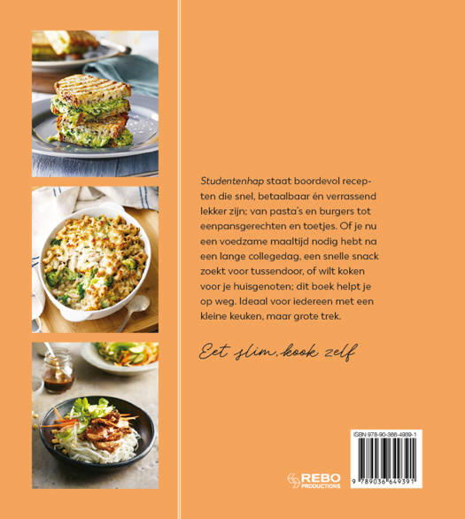 [i]Studentenhap[/i] staat boordevol recepten die snel, betaalbaar én verrassend lekker zijn; van pasta's en burgers tot eenpansgerechten en toetjes. Of je nu een voedzame maaltijd nodig hebt na een lange collegedag, een snelle snack zoekt voor tussendoor, of wilt koken voor je huisgenoten; dit boek helpt je op weg. Ideaal voor iedereen met een kleine keuken, maar grote trek. Eet slim, kook zelf!