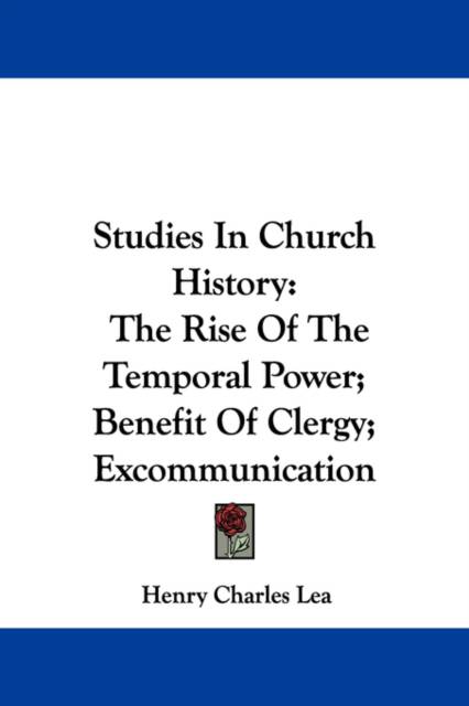 The book ""Studies in Church History: The Rise of the Temporal Power; Benefit of Clergy; Excommunication"" by Henry Charles Lea is a comprehensive exploration of the history of the Catholic Church, specifically focusing on the rise of its temporal power, the concept of benefit of clergy, and the practice of excommunication. Lea delves into the historical context of these concepts and their evolution over time, tracing their roots back to the early days of Christianity and exploring how they have been shaped by political and social forces throughout history. He examines the ways in which the Church has wielded its temporal power, both for good and for ill, and looks at the impact that the concept of benefit of clergy has had on the Church's relationship with secular authorities. The book also explores the practice of excommunication, which has been used by the Church as a means of enforcing its authority and maintaining discipline among its members. Lea examines the historical use of excommunication, the controversies that have arisen around it, and the ways in which it has been used to shape the course of Church history. Overall, ""Studies in Church History: The Rise of the Temporal Power; Benefit of Clergy; Excommunication"" provides a fascinating and in-depth look at the history of the Catholic Church, shedding light on some of its most important and controversial concepts and practices.This scarce antiquarian book is a facsimile reprint of the old original and may contain some imperfections such as library marks and notations. Because we believe this work is culturally important, we have made it available as part of our commitment for protecting, preserving, and promoting the world's literature in affordable, high quality, modern editions, that are true to their original work.