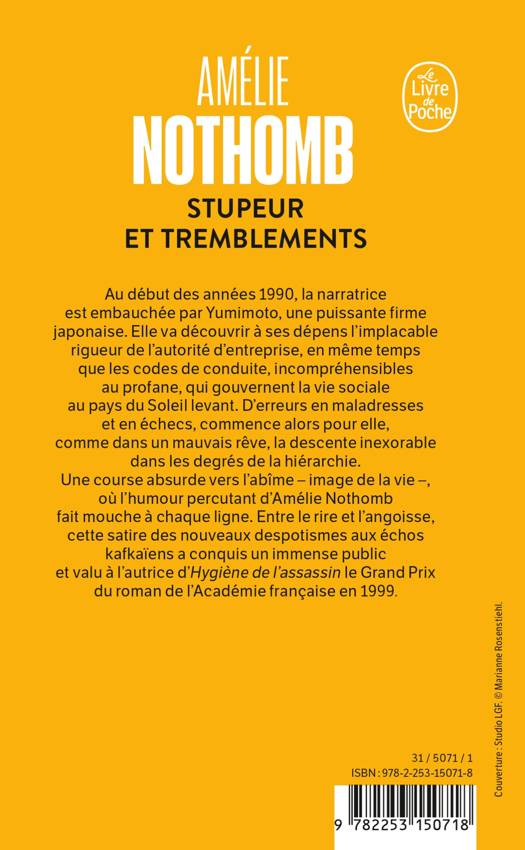 Au début des années 1990, la narratrice est embauchée par Yumimoto, une puissante firme japonaise. Elle va découvrir à ses dépens l’implacable rigueur de l’autorité d’entreprise, en même temps que les codes de conduite, incompréhensibles au profane, qui gouvernent la vie sociale au pays du Soleil levant.
