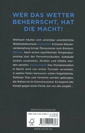 Weltweit häufen sich scheinbar unerklärliche Wetterphänomene. Australien: Extreme Wasserverdampfung bringt Ökosysteme zum Einsturz. Sibirien: Nach einem signifikanten Temperaturanstieg taut der Permafrostboden. Gebäude sacken zusammen, Straßen und Städte werden zerstört. Deutschland: Das Olympiastadion in Berlin wird von einem Tornado verwüstet, in weiten Teilen Hannovers wüten Hagelstürme. Zahllose Tote und Verletzte werden geborgen, die Nation ist im Schockzustand. Es beginnt der Kampf gegen einen Feind, der uns alle umgibt ...