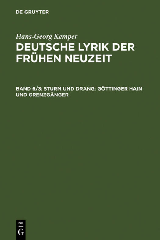 Band 6/III vereinigt von Lenz bis Schiller die Grenzgänger des Geniekults. Zumeist geistlich sozialisiert, orientieren sie sich eher an Klopstock, dem Genie der Empfindsamkeit, aber auch an der Hermetik, und finden von da aus unabhängig von Goethe auch zur Erlebnislyrik, ferner zur balladesken oder idyllischen Erneuerung der Volkspoesie oder wie Schiller zu der für die Moderne ebenfalls bedeutsamen Gedankenlyrik.
