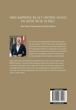 Nico, ook bekend als Nicolicious (@nicolicious2), is de creative director van Rivièra Maison. In de meer dan dertig jaar waarin hij voor dit merk werkt, creëerde hij zijn eigen stijl en regels op het vlak van interieurstyling. In dit prachtige boek neemt hij je mee in zijn wereld. Laat je inspireren door de man voor wie interieurstyling zijn lust en zijn leven is en die als motto heeft: 'meer is zeker meer!'