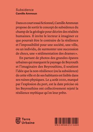 A travers une courte fiction, Camille Ammoun plonge le lecteur au coeur de la subsidence urbaine et plus particulièrement celle de Beyrouth, au Liban. <br /> Il révèle le contraire de la résilience et l'incapacité d'une ville à surmonter une altération brutale ou progressive de son environnement.
