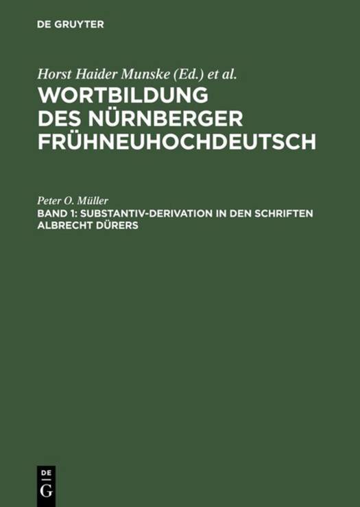 Im Anschluß an die Beschreibung der pragmatischen Indizierung des Dürer-Korpus und der Entwicklung einer Methodik für historisch-synchrone Wortbildungsuntersuchungen werden die im handschriftlichen Nachlaß und den Druckschriften Albrecht Dürers nachweisbaren Substantivableitungen (Bildungen mit Präfix, Suffix, Präfix-Suffix bzw. ohne Affix) unter morphologischem und semantisch-funktionalem Aspekt analysiert. Die synchrone Analyse wird ergänzt durch den diachronen Vergleich mit dem System der Substantivableitungen in der geschriebenen und gesprochenen Gegenwartssprache.