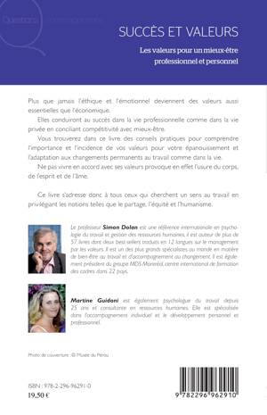 Plus que jamais l'éthique et l'émotionnel deviennent des valeurs aussi essentielles que l'économique. Elles conduiront au succès dans la vie professionnelle comme dans la vie privée en conciliant compétitivité avec mieux-être. Vous trouverez dans ce livre des conseils pratiques pour comprendre l'importance et l'incidence de vos valeurs pour votre épanouissement et l'adaptation aux changements permanents au travail comme dans la vie.