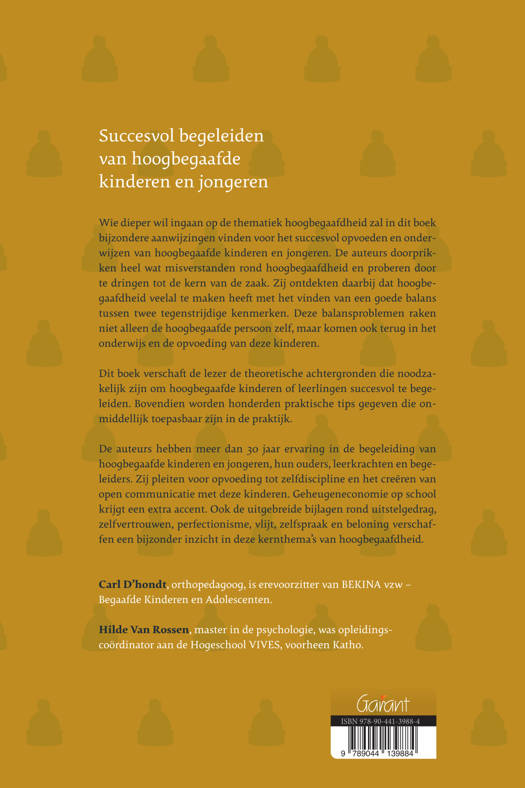 Dit boek verschaft de lezer de theoretische achtergronden die noodzakelijk zijn om hoogbegaafde kinderen of leerlingen succesvol te begeleiden. Bovendien worden honderden praktische tips gegeven die onmiddellijk toepasbaar zijn in de praktijk. De auteurs hebben meer dan 30 jaar ervaring in de begeleiding van hoogbegaafde kinderen en jongeren, hun ouders, leerkrachten en begeleiders. Zij pleiten voor opvoeding tot zelfdiscipline en het creëren van open communicatie met deze kinderen. Geheugeneconomie op school krijgt een extra accent. Ook de uitgebreide bijlagen rond uitstelgedrag, zelfvertrouwen, perfectionisme, vlijt, zelfspraak en beloning verschaffen een bijzonder inzicht in deze kernthema’s van hoogbegaafdheid.