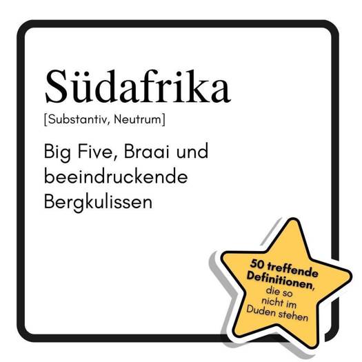 Löwen, Berge, Braai - wer glaubt, Südafrika sei nur Safari, hat noch nie über Bunny Chow gelacht oder sich von einer Vuvuzela wecken lassen. "Südafrika: Big Five, Braai und beeindruckende Bergkulissen" serviert 50 humorvolle Definitionen samt Illustrationen, die das Land am Kap von seiner schrägsten, buntesten und leckersten Seite zeigen. Von Table Mountain bis Shosholoza, von Biltong bis Ubuntu - hier wird jede Facette mit einem Augenzwinkern erklärt.Für wen dieses Buch optimal geeignet ist:- Für Südafrika-Fans mit Sinn für Humor und Neugier- Für Reiselustige, die mehr als nur Reiseführer-Floskeln wollen- Für alle, die das Land zwischen Big Five und Braai neu entdecken möchtenEin Geschenk für Weltenbummler, ein Must-have für Südafrika-Liebhaber und ein Lesevergnügen für alle, die gerne schmunzeln.Was dieses Buch bietet:- 50 witzige Definitionen zu Südafrikas Highlights- Passende Illustrationen zu jedem Begriff- Originelle Einblicke in Kultur, Natur und Kulinarik- Perfekt als Geschenk oder Souvenir
