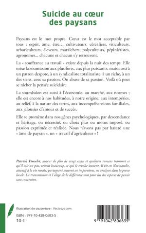 Paysans est le mot propre. Coeur est le mot acceptable par tous: esprit, âme, être... cultivateurs, céréaliers, viticulteurs, arboriculteurs, éleveurs, maraîchers, polyculteurs, pépiniéristes, agronomes... chacune et chacun s'y retrouvent. La souffrance au travail existe depuis la nuit des temps. Elle mixe la soumission aux plus forts, aux plus puissants, mais aussi à un patron despote, à un syndicaliste totalitariste, à un riche, à un des siens, avec sa passion. On abuse de sa passion. Voilà où peut se nicher la pensée suicidaire. La soumission est aussi à l'économie, au marché, aux normes; elle est encore à nos habitudes, à notre origine, aux intempéries, au relief, à la nature des terres, aux incompréhensions familiales, aux jalousies d'amour et de succès. Elle se promène dans nos gênes psychologiques, par descendance et héritage, ou nécessité, ou choix plus ou moins imposé, ou passion exprimée et réalisée. Nous n'avons pas par hasard une âme de paysan, un travail d'agriculteur !