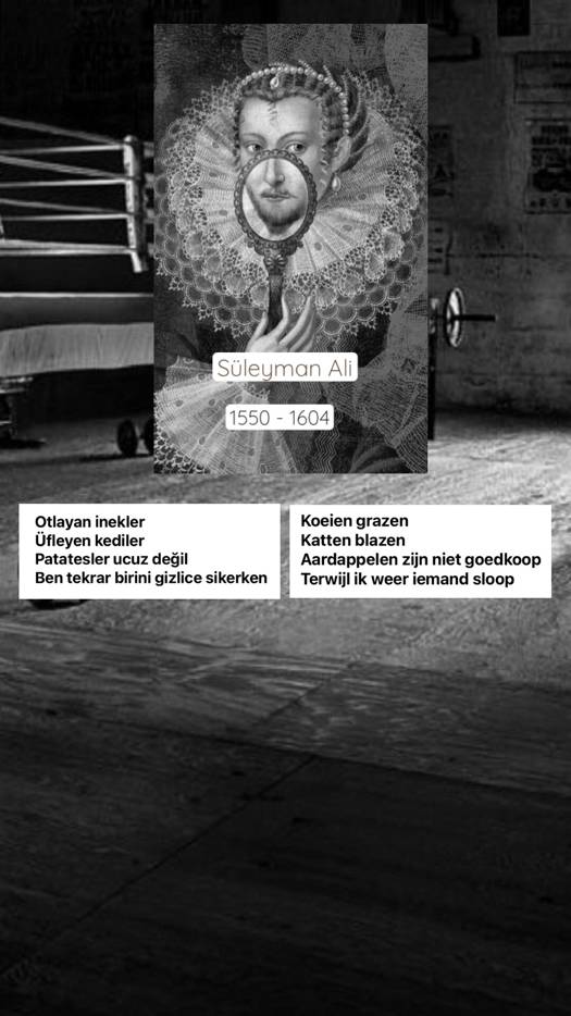 Bij archeologisch onderzoeken van de catacomben te Istanbul decennia lang, trof men in 2008, ongeveer op het hoogtepunt van de geldcrisis, naast enkele zeldzame fossielen uit het Cambrium, tevens ‘t al eeuwen verloren gewaand schrijfwerk van de vermaard maar onbekend gebleven 16de eeuwse Turkse bokser Süleyman Ali terug. Enige gelijkenis en graduele overeenkomst met poëzie van een meer eigentijdse bokser, Muhammad Ali, kan niet ontkend worden, maar is volkomen toevallig. De staatsmedewerker en kundig archeologisch ontdekker wenst onvermeld te blijven, hetgeen wij respecteren. Onmiskenbaar is het zo, dat getransformeerd naar een ander soort spreken, poëzie 50% van oorspronkelijke zeggingskracht verliest; er is hier sprake van het omgekeerde. En wel puur gedankt de meermaals mooi metrische kloppartij van Hans Koppelstok. Tevens voorzag hij de kwatrijnen van titels; en drie van de vierentwintig verzen, verhalend over Süleyman Ali, zijn, zij het in Ali’s stijl, geheel van Koppelstok’s eigen zwetende hand. Koppelstok nam, om te weten hoe het voelt, bokslessen zelf bij een Pakistaanse meester; maar daarop zijn de woorden van Simon Carmiggelt van toepassing, die ook bokste en over zijn trainer zei; ‘Als pugilist waren voor die man partijtjes met mij een vorm van zondag recreatie.