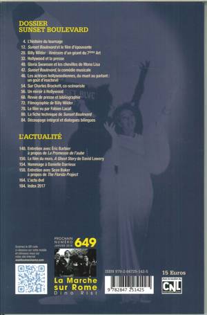 Gloria Swanson, pitoyable ou flamboyante ? William Holden, héros ou salaud ? Eric Von Stroheim, maléfique ou généreux ? Un trio au coeur d'un de plus grands films hollywoodiens à propos de... Hollywood ! Un scénariste qui n'a plus de travail rencontre par hasard dans sa villa somptueuse de Sunset Boulevard une star oubliée du cinéma muet. Protégée par un mystérieux domestique, elle croit pouvoir revenir devant les projecteurs. L'écrivain au chômage et l'étoile déchue engagent une relation fatale, se brûlant tous les deux aux feux trompeurs des sunlights. Un important dossier sur le film, le contexte de sa réalisation en 1950, les métamorphoses de l'Olympe du cinéma américain, accompagne le découpage détaillé et illustré du film, plan par plan, avec tous les dialogues en édition bilingue français-anglais.