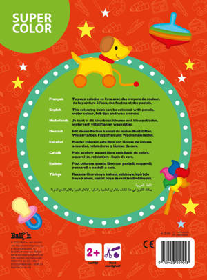 Je kunt in dit kleurboek kleuren met kleurpotloden, waterverf, viltstiften en waskrijtjes dankzij de dikke pagina's.