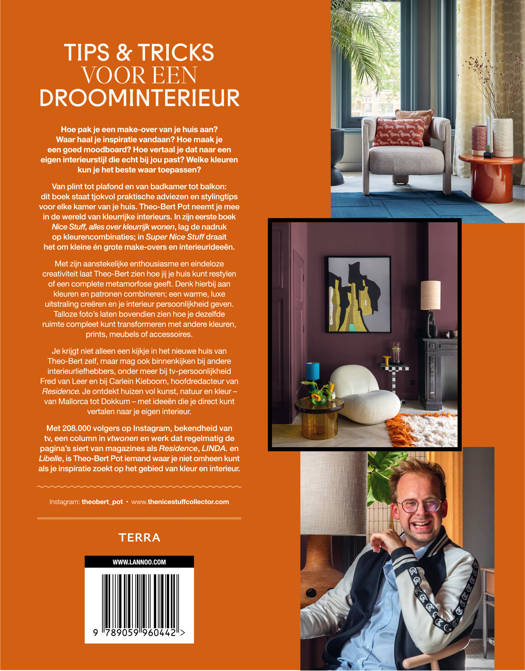 Met zijn eerste boek Nice Stuff liet Theo-Bert Pot zien hoe je jouw interieur persoonlijker kan maken en hoe je steeds je interieur kan blijven vernieuwen. In dit nieuwe boek gaat de bekende stylist en tv-presentator (BinnensteBuiten) daarin verder met meer kleurcombinaties, ideeën om stijlen te mixen en je interieur nog eigenwijzer en persoonlijker te maken.