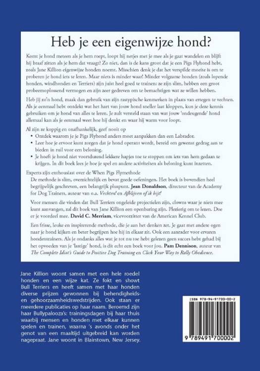 Door Jane Killion. Superhonden is de vertaling van het boek When Pigs Fly van Jane Killion. Jane beschrijft hierin de door haar ontwikkelde leermethode die is gebaseerd op wederzijds respect. Ze heeft haar methode ontwikkeld op grond van haar jarenlange ervaring met haar 'eigenwijze' Bull Terriers. Je leert gebruik te maken van de aangeboren talenten van je hond en zult versteld staan van wat jouw 'ondeugende' hond allemaal kan als je eenmaal weet hoe hij denkt en waar hij warm voor loopt.Heb je een eigenwijze hond?Komt je hond meteen als je hem roept, loopt hij netjes met je mee als je gaat wandelen en blijft hij braaf zitten als je hem dat vraagt? Zo niet, dan is de kans groot dat je een Pigs Flyhond hebt, zoals Jane Killion eigenwijze honden noemt. Misschien denk je dat het verspilde moeite is om te proberen je hond iets te leren. Maar niets is minder waar! Minder volgzame honden (zoals lopende honden, windhonden en Terriers) zijn juist heel goed te trainen: ze zijn slim, hebben een groot probeemoplossend vermogen en zijn zeer gedreven om te bemachtigen wat ze willen hebben.Heb jij zo'n hond, maak dan gebruik van zijn rastypische kenmerken in plaats van ertegen te vechten. Als je eenmaal hebt ontdekt wat het hart van jouw hond sneller laat kloppen, kun je deze kennis gebruiken om je hond van alles te leren. Je zult versteld staan van wat jouw 'ondeugende' hond allemaal kan als je eenmaal weet hoe hij denkt en waar hij warm voor loopt.1. De methode is slim, overzichtelijk en bevat goede oefeningen. Het boek is bovendien heel begrijpelijk geschreven, een belangrijk pluspunt. Jean Donaldson, directeur van de Academy for Dog Trainers, auteur van o.a. Vechten! en Afblijven of ik bijt!2. Een frisse, leuke en inspirerende methode, die je aan het denken zet. Je gaat met andere ogen naar je hond kijken en beter begrijpen hoe hij in elkaar zit. Ook een aanrader voor ervaren hondentrainers. Als je ondanks alles wat je tot nu toe hebt gelezen geen succes hebt gehad bij het opvoeden van je 'lastige' hond, is dit echt een boek voor jou. Pam Dennison, auteur van The Complete Idiot's Guide to Positive Dog Training en Click Your Way to Rally Obedience.Over de auteurJane Killion is met hondentraining begonnen nadat haar voormalige echtgenoot zich met hun nieuwe Bull Terrierpup Nicky had opgegeven voor een gehoorzaamheidscursus en het na twee lessen voor gezien hield. Jane nam de training over en werd geconfronteerd met een ogenschijnlijk onoverkomelijk probleem: de pup was zo wild dat hij letterlijk bezweek van opwinding als hij mee uit werd genomen. Jane vond dat hij als een 'normale' hond van het leven moest kunnen genieten, dus besteedde ze jaren aan het vergaren van kennis over honden, hondengedrag en trainingstheorieën. Ze raakte in de ban van hondentraining. Haar moeite werd beloond en ze heeft met Nicky zelfs verschillende titels behaald op het gebied van behendigheid en gehoorzaamheid.Het is haar passie om mensen te helpen die te horen hebben gekregen dat hun hond 'moeilijk gedrag' vertoont of niet in staat is om te leren. Ze heeft groot succes behaald door mensen te leren hoe ze een andere band met hun hondenmaatje kunnen krijgen door gewenst gedrag te shapen. Het belangrijkste is dat ze niet voor onderdanigheid kiest; ze leert mensen hoe ze een hond kunnen shapen op een manier die zowel voor de hond als de baas leuk is.Jane woont samen met een hele roedel Bull Terriers en een heel verstandige kat. Ze fokt en showt Bull Terriers en heeft samen met haar honden diverse prijzen gewonnen bij behendigheids- en gehoorzaamheidswedstrijden. Ook staan er meerdere publicaties op haar naam. Beroemd zijn haar 'Bullypalooza's': trainingsdagen bij haar thuis waarbij mensen en honden met elkaar kunnen spelen en trainen, waarna 's avonds onder het genot van een maaltijd uitgebreid kan worden nagepraat. Haar website is www.madcapbullterriers.com.