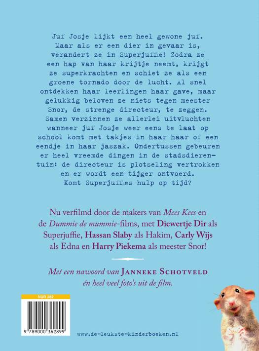 Superjuffie! werd verfilmd door de makers van Mees Kees en de Dummie de mummie-films en werd anderhalve maand na verschijning al uitroepen tot meest succesvolle vaderlandse familieproductie van de afgelopen twee jaar! Met Diewertje Dir als Superjuffie, Harry Piekema als meester Snor, Carly Wijs als Edna en Hassan Slaby als Hakim! Deze filmeditie bevat making of-foto’s op de set én een speciaal nawoord van Janneke Schotveld.