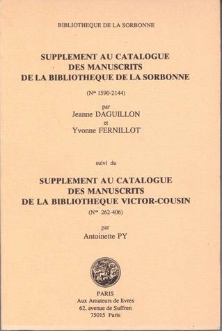 Suivi du Supplément au catalogue des manuscrits de la Bibliothèque Victor-Cousin (par Antoinette Py)