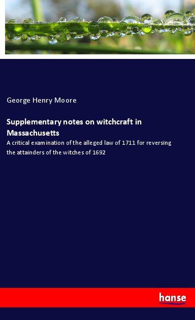 Supplementary notes on witchcraft in Massachusetts - A critical examination of the alleged law of 1711 for reversing the attainders of the witches of 1692 is an unchanged, high-quality reprint of the original edition of 1884.Hansebooks is editor of the literature on different topic areas such as research and science, travel and expeditions, cooking and nutrition, medicine, and other genres. As a publisher we focus on the preservation of historical literature. Many works of historical writers and scientists are available today as antiques only. Hansebooks newly publishes these books and contributes to the preservation of literature which has become rare and historical knowledge for the future.