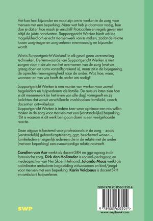 Supportgericht Werken is een manier van werken voor zowel begeleiders en hulpverleners als familie. De auteurs laten zien hoe je dit mensenwerk (in het leven van alle dag) vormgeeft en belichten dat vanuit verschillende invalshoeken: familielid, coach, docent en ontwikkelaar.