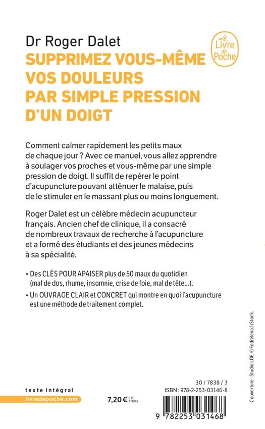 Pourquoi ne sauriez-vous pas, comme le font des milliers de Chinois, soulager vos proches et vous-même par simple pression d'un doigt ?Il ne s'agit pas, bien sûr, de traitements complets, réservés aux médecins acupuncteurs, mais de calmer rapidement, aussi bien qu'avec gouttes ou cachets, les petits maux de chaque jour.