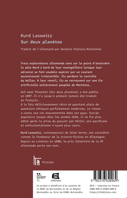 Sur deux planètes a été publié en 1897, et jusqu'à présent jamais traduit en français. Kurd Lasswitz est considéré comme le fondateur de la science-fiction allemande (le prix allemand de SF porte aujourd'hui son nom). Il est contemporain de Jules Verne. À la fois délicieusement rétro et pourtant plein de questions éthiques parfaitement modernes, Auf zwei Planeten a connu une vie mouvementée dans son pays. Succès largement partagé jusque dans les années 1920, il ne fut plus édité dès la prise de pouvoir par Hitler, son pacifisme et anticolonialisme n'ayant plus cours.