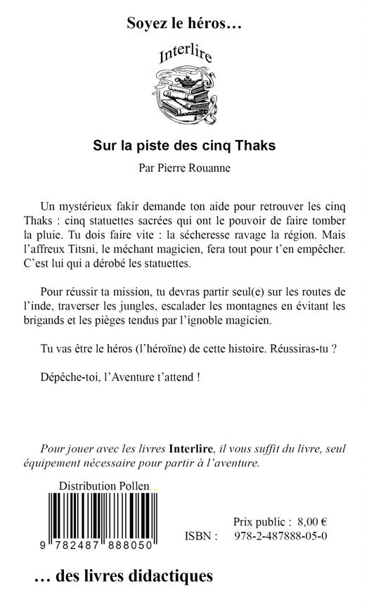 Un mystérieux fakir demande ton aide pour retrouver les cinq Thaks : cinq statuettes sacrées qui ont le pouvoir de faire tomber la pluie. Tu dois faire vite : la sécheresse ravage la région. Mais l’affreux Titsni, le méchant magicien, fera tout pour t’en empêcher. C’est lui qui a dérobé les statuettes. Pour réussir ta mission, tu devras partir seul(e) sur les routes de l’inde, traverser les jungles, escalader les montagnes en évitant les brigands et les pièges tendus par l’ignoble magicien. Tu vas être le héros (l’héroïne) de cette histoire. Réussiras-tu ? Dépêche-toi, l’Aventure t’attend !