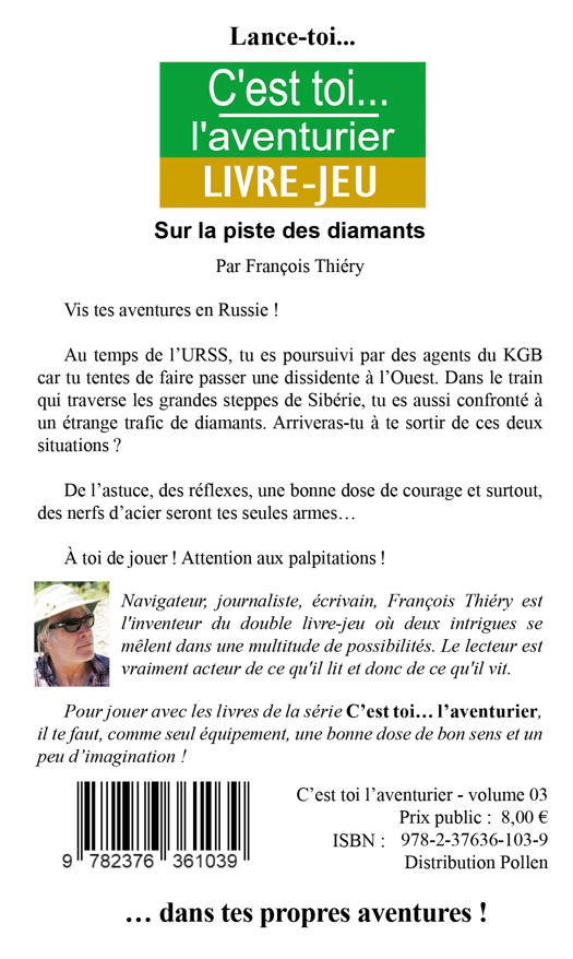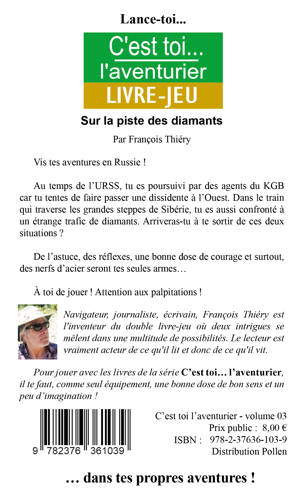Vis tes aventures en Russie ! Au temps de l’URSS, tu es poursuivi par des agents du KGB car tu tentes de faire passer une dissidente à l’Ouest. Dans le train qui traverse les grandes steppes de Sibérie, tu es aussi confronté à un étrange trafic de diamants. Arriveras-tu à te sortir de ces deux situationsâ? De l’astuce, des réflexes, une bonne dose de courage et surtout, des nerfs d’acier seront tes seules armesâ- À toi de jouerâ! Attention aux palpitationsâ!