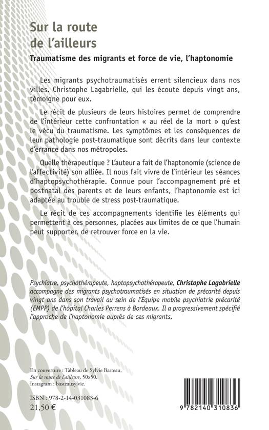 Les migrants psychotraumatisés errent silencieux dans nos villes. Christophe Lagabrielle, qui les écoute depuis vingt ans, témoigne pour eux. Le récit de plusieurs de leurs histoires permet de comprendre de l'intérieur cette confrontation au réel de la mort qu'est le vécu du traumatisme. Les symptômes et les conséquences de leur pathologie post-traumatique sont décrits dans leur contexte d'errance dans nos métropoles. Quelle thérapeutique ? L'auteur a fait de l'haptonomie (science de l'affectivité) son alliée. Il nous fait vivre de l'intérieur les séances d'haptopsychothérapie. Connue pour l'accompagnement pré et postnatal des parents et de leurs enfants, l'haptonomie est ici adaptée au trouble de stress post-traumatique. Le récit de ces accompagnements identifie les éléments qui permettent à ces personnes, placées aux limites de ce que l'humain peut supporter, de retrouver force en la vie.