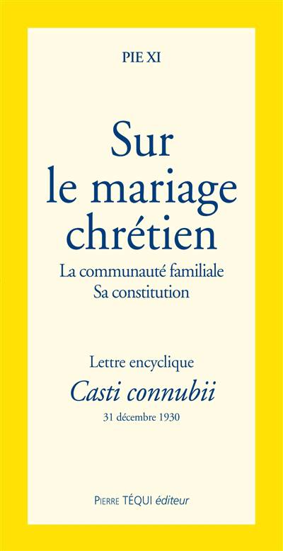 Pie XI nous entretient dans cette encyclique de la nature du mariage chrétien, de sa dignité, des avantages et des bienfaits qui s'en répandent sur la famille et sur la société humaine elle-même, des très graves erreurs contraires à cette partie de la doctrine évangélique. Aussi sont traitées les questions comme l'affranchissement de la femme, la charge des enfants, le divorce, la préparation au mariage...