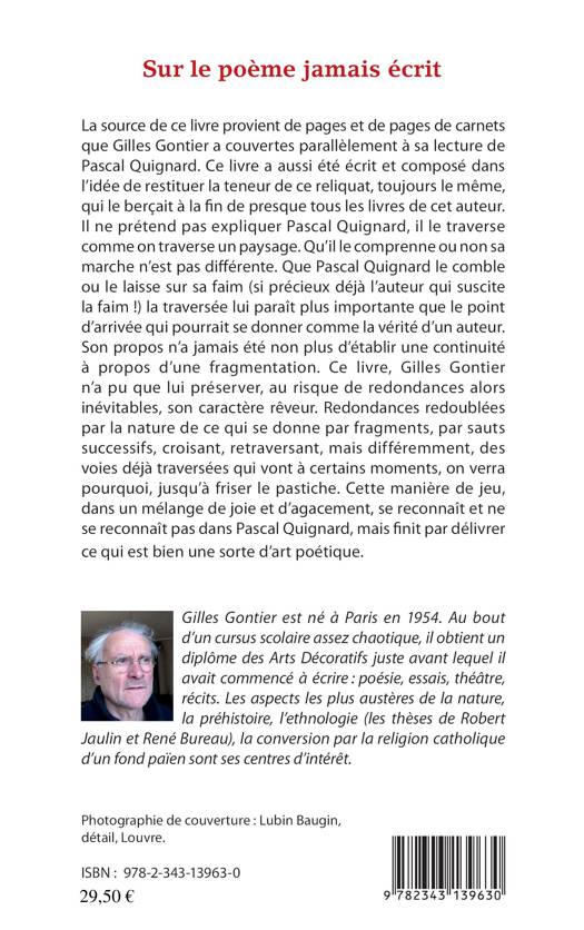 Aucune démarche n'a conduit ce que m'a fait produire ma lecture de Pascal Quignard. Comme il le dit lui-même, jamais autant que dans l'écriture le langage ne paraît plus indépendant ni plus infini. Ecrire est faire l'expérience que l'écriture n'est jamais la rédaction d'une pensée, mais celle d'une chose qui va toute seule. Je suis étonné et dépassé par ce refus de l'écriture à n'être que le simple support de la pensée, ce qui me contient à un rôle peu défini. Je ne pourrais parler ce que j'écris. Ecrire comme est écrit ce livre est finalement l'art de se laisser prendre.