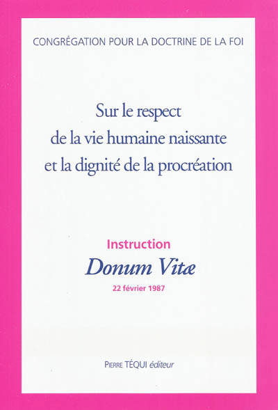 L'instruction entend offrir des réponses aux principales questions soulevées au sujet de la phase initiale de la vie humaine. L'introduction rappelle les principes fondamentaux ; la première partie a pour objet le respect de l'être humain dès sa conception ; la seconde concerne les questions morales liées à l'intervention de la technique et la troisième présente quelques orientations sur les rapports entre les deux sujets étudiés.
