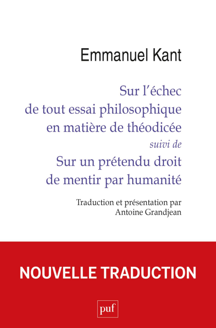 Si le mal est ce qui doit ne pas être, il place la métaphysique devant une alternative : prétendre saisir la rationalité du réel malgré le mal, ou prendre au sérieux l’exigence de penser le monde depuis le mal. La première attitude, caractéristique de ce que la tradition nomme la théodicée, est selon Kant une illusion, dont la déconstruction ne laisse ouvert que le second chemin. Le suivre suppose de s’intéresser à la question du mensonge, que le philosophe présente comme un mal en toutes circonstances. Kant produit ici l’une des rares légitimations philosophiques de la plainte, en même temps qu’il s’efforce à déterminer précisément ce que mentir veut dire. Cette nouvelle traduction est l’occasion de revenir sur la célèbre controverse entre Kant et Constant qui pourrait bien être en partie le résultat d’un coup monté.