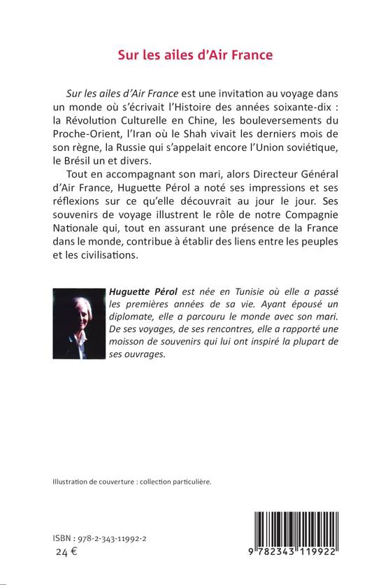 Ce récit est une invitation au voyage dans un monde où s'écrivait l'Histoire des années soixante-dix : la Révolution culturelle en Chine, les bouleversements du Proche-Orient, l'Iran où le Shah vivait les derniers mois de son règne, la Russie alors encore Union soviétique, le Brésil un et divers. Tout en accompagnant son mari, alors directeur général d'Air France, Huguette Pérol a noté ses souvenirs de voyage pour illustrer le rôle de cette Compagnie nationale, qui contribue à établir des liens entre les peuples et les civilisations.