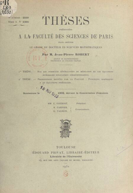 Suivi de Propositions données par la Faculté : fonctions sphériques et équations intégrales