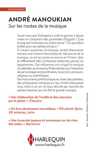 Savez-vous que Pythagore a créé la gamme à douze notes en s’inspirant des pyramides d’Égypte ? Que le loup est l’inventeur du chant choral ? Ou que Bach brillait pour ses battles d’impro ? À travers quarante chroniques, André Manoukian retrace une histoire fascinante et méconnue de la musique, un art qui puise sa source en Orient, dans les raffinements des civilisations indiennes, perses ou égyptiennes. Ces influences ont irrigué la musique occidentale, qui évolue au fil des siècles sous l’impulsion de personnages extraordinaires, musiciens, penseurs, religieux ou scientifiques. Des instruments préhistoriques au chant des planètes, des philosophes antiques au rap, André Manoukian nous initie à cet art et nous dévoile par touches les petites histoires qui ont fait la grande musique.