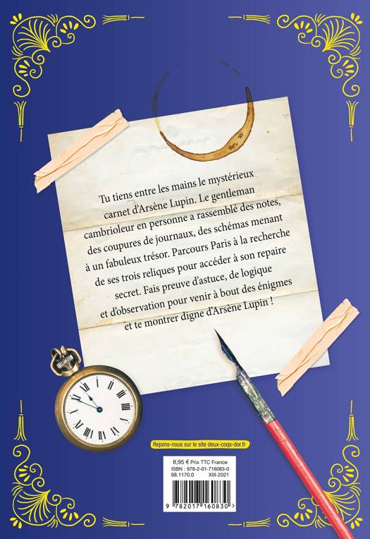 Vous avez toujours rêvé de pénétrer dans la chambre secrète d'Arsène Lupin ? Partez à l'aventure grâce à une véritable chasse aux trésors au coeur de Paris ! Parcourez les lieux, résolvez 40 énigmes, rassemblez les reliques du célèbre gentleman et tentez de découvrir leurs secrets ! Une histoire pleine de surprises pour suivre les traces du cambrioleur le plus apprécié !