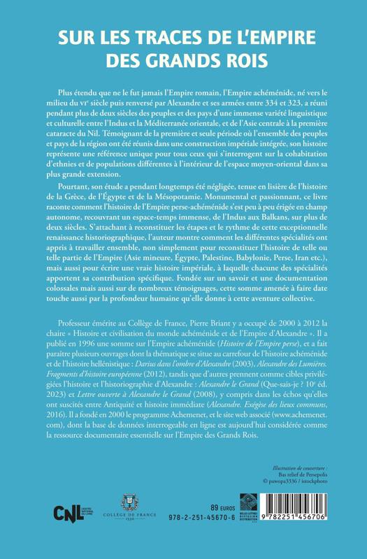 Plus etendu que ne le fut jamais l'Empire romain, l'Empire achemenide, ne vers le milieu du vie siecle puis renverse par Alexandre et ses armees entre 334 et 323, a reuni pendant plus de deux siecles des peuples et des pays d'une immense variete linguistique et culturelle entre l'Indus et la Mediterranee orientale, et de l'Asie centrale a la premiere cataracte du Nil. Temoignant de la premiere et seule periode ou l'ensemble des peuples et pays de la region ont ete reunis dans une construction imperiale integree, son histoire represente une reference unique pour tous ceux qui s'interrogent sur la cohabitation d'ethnies et de populations differentes a l'interieur de l'espace moyen-oriental dans sa plus grande extension. Pourtant, son etude a pendant longtemps ete negligee, tenue en lisiere de l'histoire de la Grece, de l'Egypte et de la Mesopotamie. Monumental et passionnant, ce livre raconte comment l'histoire de l'Empire perse-achemenide s'est peu a peu erigee en champ autonome, recouvrant un espace-temps immense, de l'Indus aux Balkans, sur plus de deux siecles. S'attachant a reconstituer les etapes et le rythme de cette exceptionnelle renaissance historiographique, l'auteur montre comment les differentes specialites ont appris a travailler ensemble, non simplement pour reconstituer l'histoire de telle ou telle partie de l'Empire (Asie mineure, Egypte, Palestine, Babylonie, Perse, Iran etc.), mais aussi pour ecrire une vraie histoire imperiale, a laquelle chacune des specialites apportent sa contribution specifique. Fondee sur un savoir et une documentation colossales mais aussi sur de nombreux temoignages, cette somme amenee a faire date touche aussi par la profondeur humaine qu'elle donne a cette aventure collective.