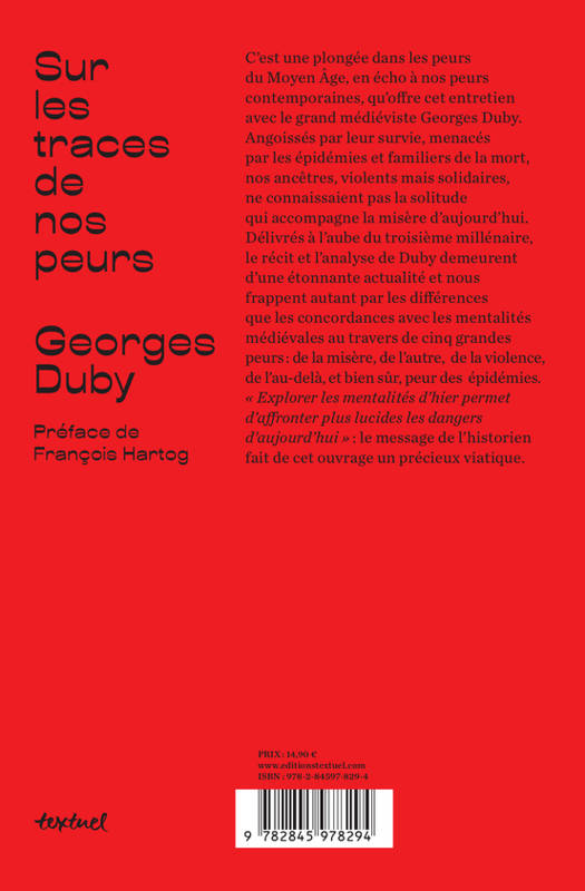 Plongée dans les mentalités du Moyen Âge et dans les peurs de nos ancêtres, au premier chef desquelles : les épidémies. «Explorer les mentalités d'hier permet d'affronter plus lucides les dangers d'aujourd'hui ». À l'heure de la crise du Covid, le message citoyen du grand historien Georges Duby fait de cet ouvrage un précieux viatique.