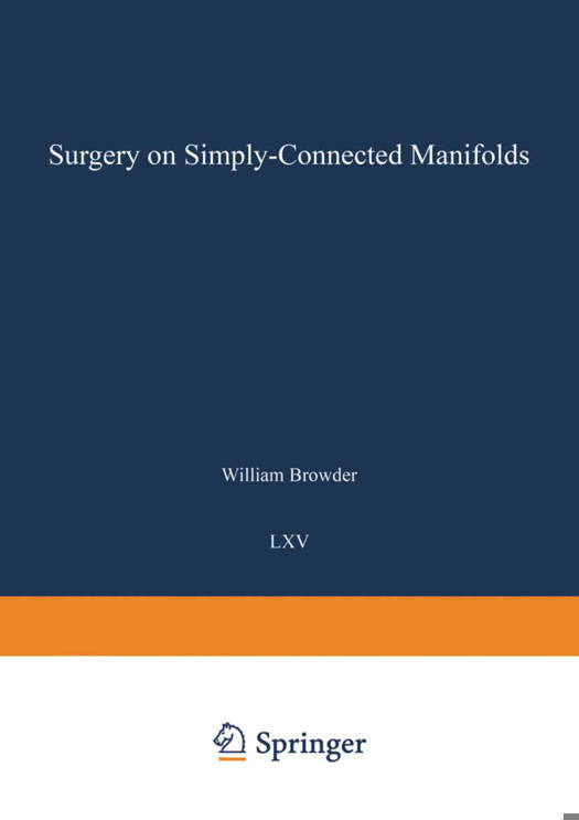 This book is an exposition of the technique of surgery on simply-connected smooth manifolds. Systematic study of differentiable manifolds using these ideas was begun by Milnor [45] and Wallace [68] and developed extensively in the last ten years. It is now possible to give a reasonably complete theory of simply-connected manifolds of dimension 5 using this approach and that is what I will try to begin here. The emphasis has been placed on stating and proving the general results necessary to apply this method in various contexts. In Chapter II, these results are stated, and then applications are given to characterizing the homotopy type of differentiable manifolds and classifying manifolds within a given homotopy type. This theory was first extensively developed in Kervaire and Milnor [34] in the case of homotopy spheres, globalized by S. P. Novikov [49] and the author [6] for closed 1-connected manifolds, and extended to the bounded case by Wall [65] and Golo [23]. The thesis of Sullivan [62] reformed the theory in an elegant way in terms of classifying spaces.