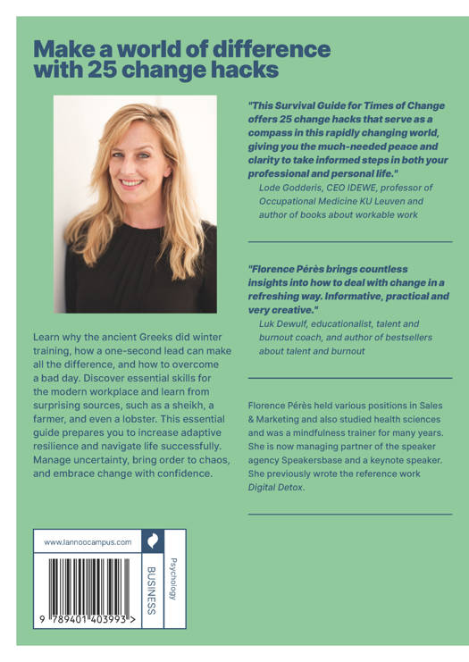 "This Survival Guide for Times of Change offers 25 change hacks that serve as a compass in this rapidly changing world, giving you the much-needed peace and clarity to take informed steps in both your professional and personal life."