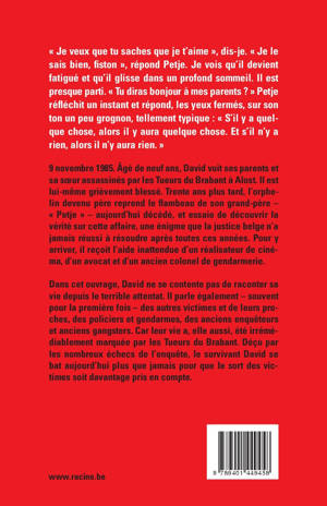 9 novembre 1985. Âgé de neuf ans, David voit ses parents et sa soeur assassinés par les Tueurs du Brabant à Alost. Il est lui-même grièvement blessé. Trente ans plus tard, l'orphelin devenu père reprend le flambeau de son grand-père - « Petje » - aujourd'hui décédé, et essaie de découvrir la vérité sur cette affaire, une énigme que la justice belge n'a jamais réussi à résoudre après toutes ces années. Pour yarriver, il reçoit l'aide inattendue d'un réalisateur de cinéma, d'un avocat et d'un ancien colonel de gendarmerie.