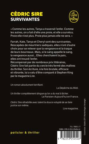 Farrah, Kate, Tanya et Cheryl sont des survivantes. Rescapées de meurtriers sadiques, elles n’ont d’autre choix pour se relever que la vengeance et la traque de leurs bourreaux. Mais, si le sang appelle le sang, la vengeance aussi... Elles cherchaient la paix, elles ont trouvé l’enfer.