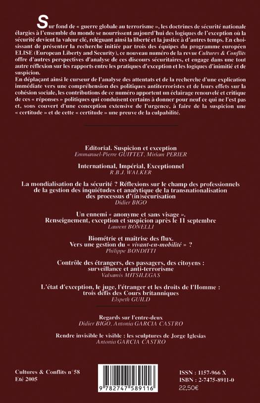 Sur fond de "guerre globale au terrorisme" ,les doctrines de sécurité nationale élargies à l'ensemble du monde se nourrissent aujourd'hui des logiques de I 'exception où la sécurité devient la valeur clé, reléguant ainsi la liberté et la justice à d'autres.