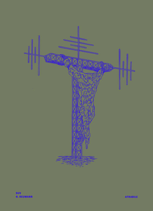 Helge Reumann n’est pas un inconnu: ces dernières années, on l’aura vu tenter de corrompre notre fière jeunesse avec quelques beaux titres parus au Rouergue (Bagarre, Poursuite); il aura également fricoté avec le monde de l’art contemporain, en compagnie de Xavier Robel au sein d’Elvis Studio, où ils produiront ensemble quantité d’affiches géantes et surtout l’incontournable Elvis Road; puis en solo, il offrira à Atrabile l’occasion de faire son livre le plus beau et le plus imposant (Black Medicine Book). Pendant toutes ces années, il n’aura eu de cesse d’essaimer son talent au sein de la fine fleur de l’édition (réellement) alternative (United Dead Artist, le Dernier Cri) et dans quelques revues de choix (Kramers Ergot, Bile noire). H. Reumann n’est pas un inconnu, donc, mais il s’est pourtant fait rare dans le magnifique monde de la bande dessinée. Il suffisait d’être patient, et le voilà débarquer avec cet incroyable, et incomparable, SUV. Dans SUV, H. Reumann ne change pas de cap et travaille toujours les mêmes obsessions: violence urbaine et nature austère domptée par l’homme, règlement de compte à coup de tatane, et une méfiance généralisée pour tous ceux, et celles, qui marchent au pas. Il y a bien de la folie, et de l’humour, dans SUV, mais distillé à la sauce Reumann, avec une mise en page et un trait aussi rigoureux que beau, un côté pince-sans-rire qui sait faire des ravages, et une ambiance inquiétante et étrange qui est presque devenue une marque de fabrique.