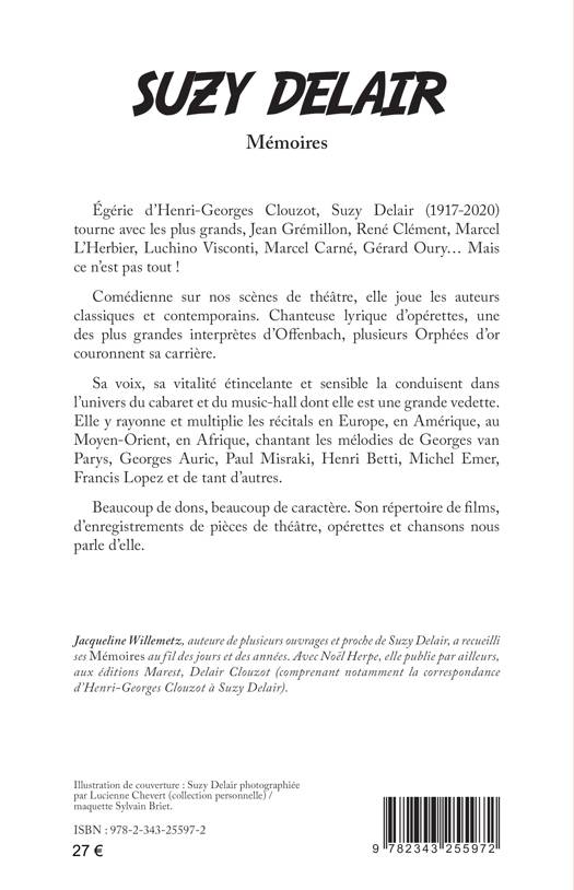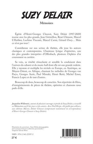 Égérie d’Henri-Georges Clouzot, Suzy Delair (1917-2020) tourne avec les plus grands, Jean Grémillon, René Clément, Marcel L’Herbier, Luchino Visconti, Marcel Carné, Gérard Oury... Mais ce n’est pas tout ! Comédienne sur nos scènes de théâtre, elle joue les auteurs classiques et contemporains. Chanteuse lyrique d’opérettes, une des plus grandes interprètes d’Offenbach, plusieurs Orphées d’or couronnent sa carrière. Sa voix, sa vitalité étincelante la conduisent dans l’univers du cabaret dont elle est une grande vedette. Elle y rayonne et multiplie les récitals en Europe, en Amérique, au Moyen-Orient, en Afrique, chantant les mélodies de Georges van Parys, Georges Auric, Paul Misraki, et de tant d’autres. Son répertoire de films, d’enregistrements de pièces de théâtre, opérettes et chansons nous parle d’elle.