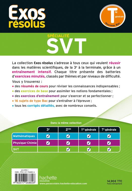 La collection Exos résolus s'adresse à tous ceux qui veulent réussir dans les matières scientifiques, de la 3e à la terminale, grâce à un entraînement intensif. Chaque titre présente des batteries d'exercices minutés, classés par thèmes et par niveaux de difficulté.