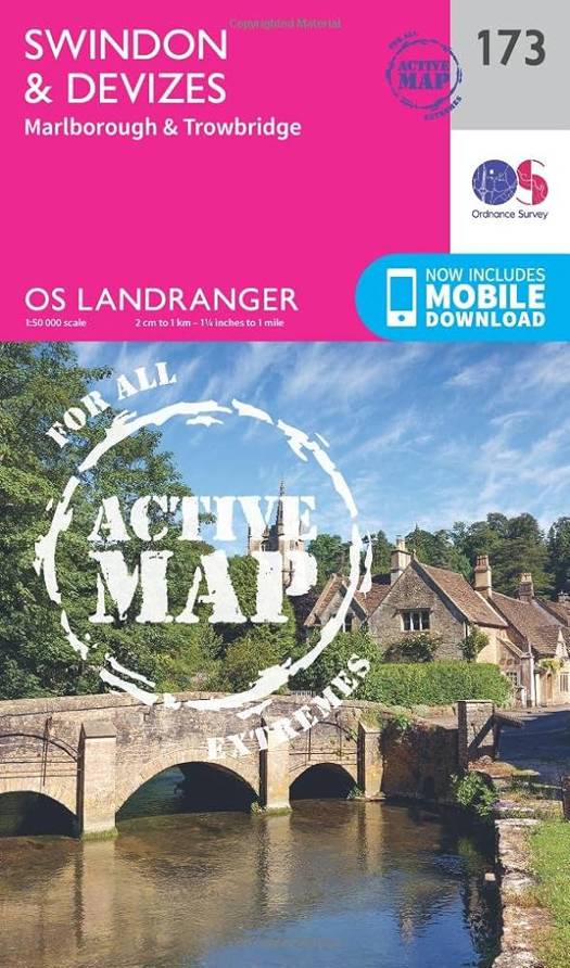 Map sheet number 173 in the OS Landranger map series covers the edge of the Cotswold Hills and the Vale of Pewsey.