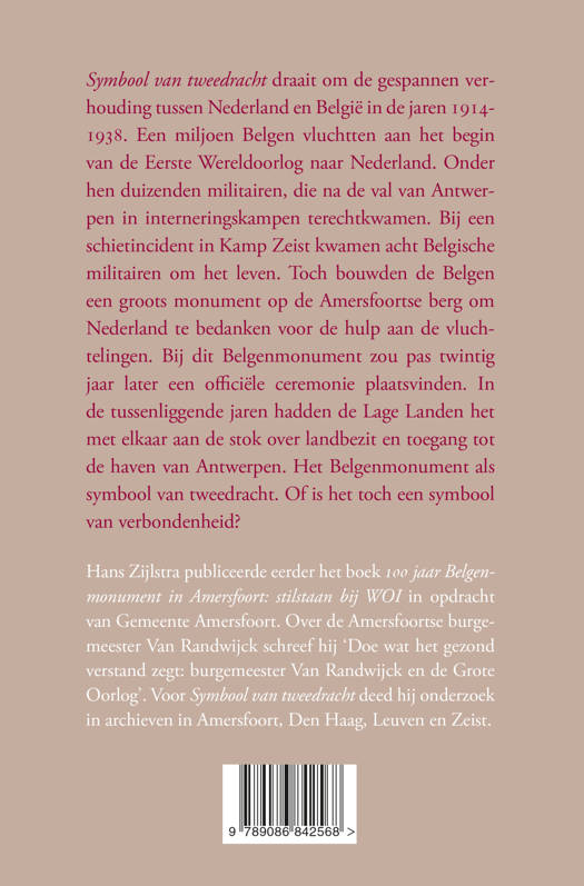 Symbool van tweedracht draait om de gespannen verhouding tussen Nederland en België in de jaren 1914-1938. Een miljoen Belgen vluchtten aan het begin van de Eerste Wereldoorlog naar Nederland. Onder hen duizenden militairen, die na de val van Antwerpen in interneringskampen terechtkwamen. Bij een schietincident in Kamp Zeist kwamen acht Belgische militairen om het leven. Toch bouwden de Belgen een groots monument op de Amersfoortse berg om Nederland te bedanken voor de hulp aan de vluchtelingen. Bij dit Belgenmonument zou pas twintig jaar later een officiële ceremonie plaatsvinden. In de tussenliggende jaren hadden de Lage Landen het met elkaar aan de stok over landbezit en toegang tot de haven van Antwerpen. Het Belgenmonument als symbool van tweedracht. Of is het toch een symbool van verbondenheid?