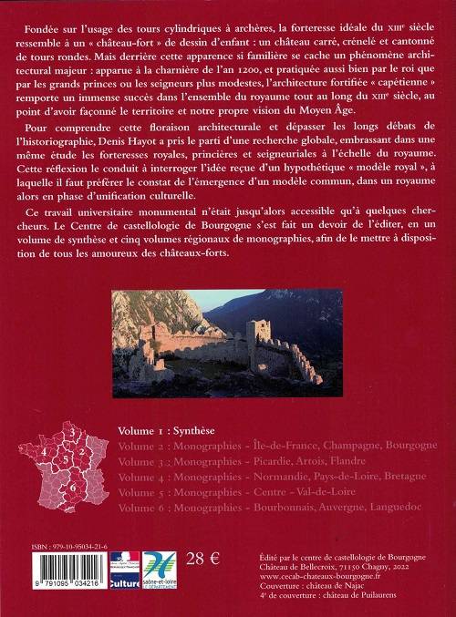 Ce travail universitaire monumental n’était jusqu’alors accessible qu’à quelques chercheurs. Le Centre de castellologie de Bourgogne s’est fait un devoir de l’éditer, en un volume de synthèse et cinq volumes régionaux de monographies, afin de le mettre à disposition de tous les amoureux des châteaux-forts.